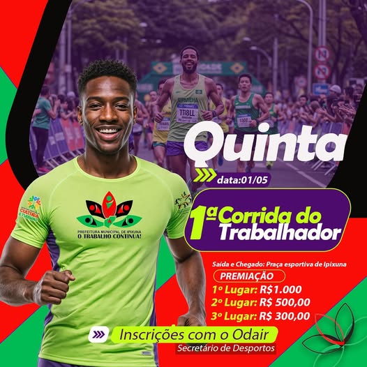 Prefeitura de Ipixuna-Am realizará a primeira corrida do trabalhador neste 1º de Maio 26 de abril de 2025